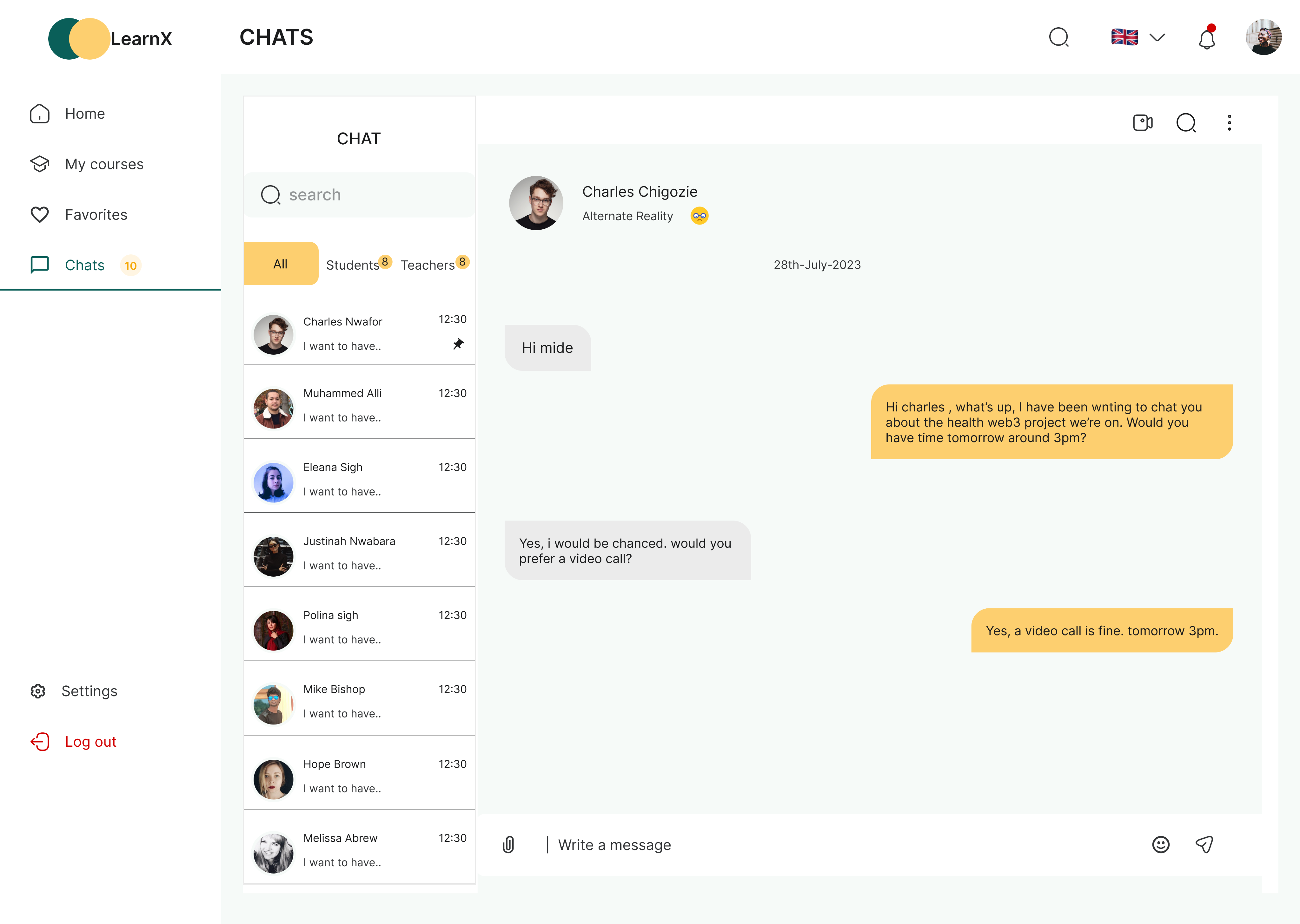Students will be able to interact with their fellow students and instructors right on the chat screen. This is to improve collaboration and communication amongst students and instructors.