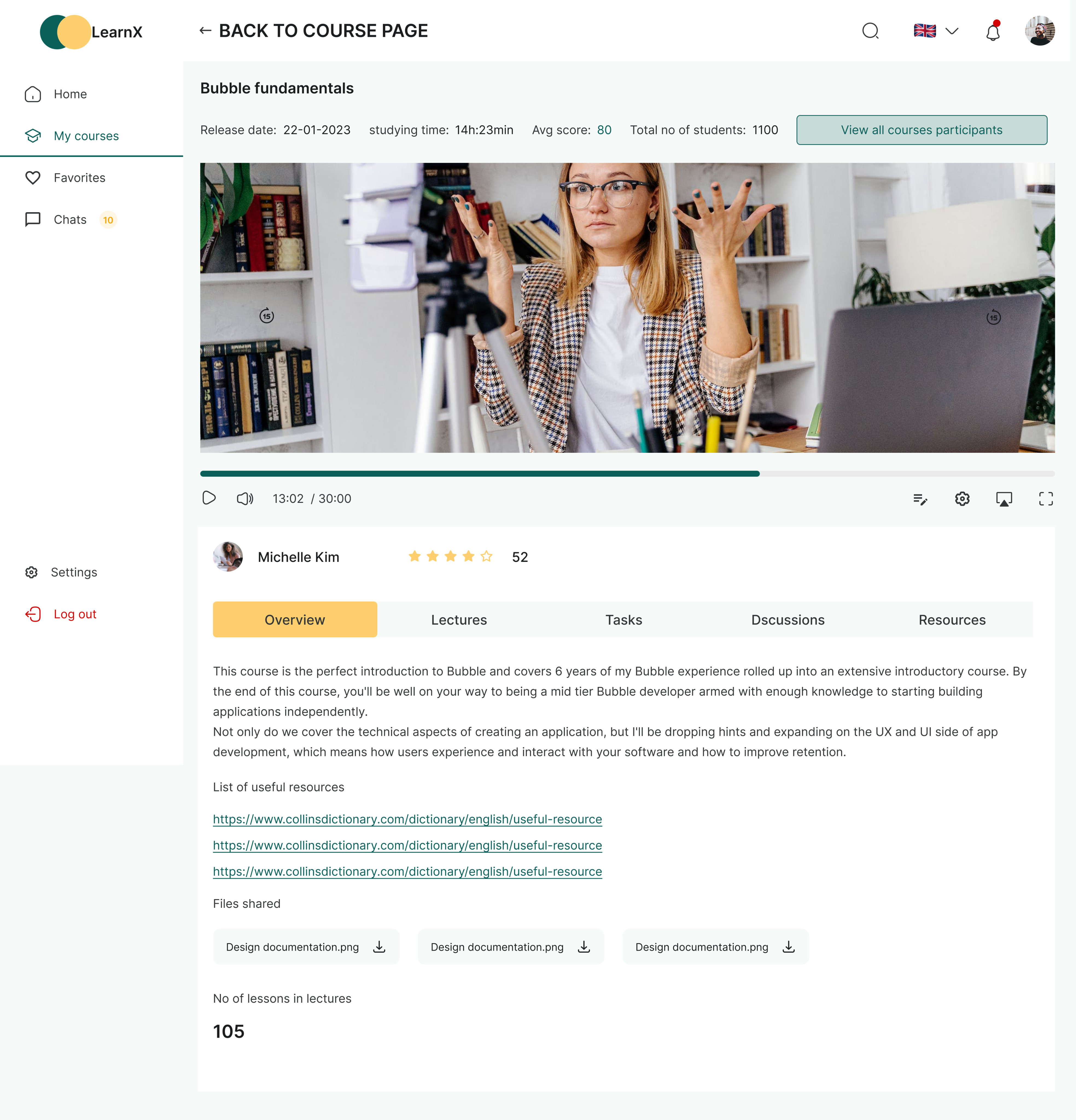 Course detail page is the screen where users will be able to take their selected course by watching the video tutorial and have access to other learning material attached to the course.